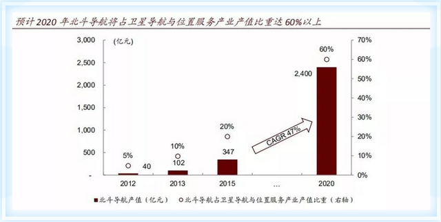 統(tǒng)計(jì)數(shù)據(jù)顯示,2012年北斗導(dǎo)航僅占整個(gè)衛(wèi)星導(dǎo)航產(chǎn)業(yè)產(chǎn)值5%,2020年預(yù)計(jì)國(guó)內(nèi)衛(wèi)星導(dǎo)航定位產(chǎn)業(yè)產(chǎn)值將達(dá)到4000億元,其中北斗系統(tǒng)將貢獻(xiàn)60%。沒(méi)有國(guó)家的高瞻遠(yuǎn)矚和數(shù)以萬(wàn)計(jì)的工程師、科學(xué)家近30年的自主研發(fā),這些真金白銀多數(shù)都要落入美國(guó)GPS的口袋。